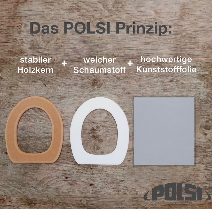 Der POLSI hat eine rundum glatte und wasserdichte Oberfläche. Dadurch wird eine einfache und gründliche Reinigung gewährleistet. Außerdem ist der Kunststoffüberzug strapazierfähiger als herkömmliche WC-Sitz-Oberflächen.